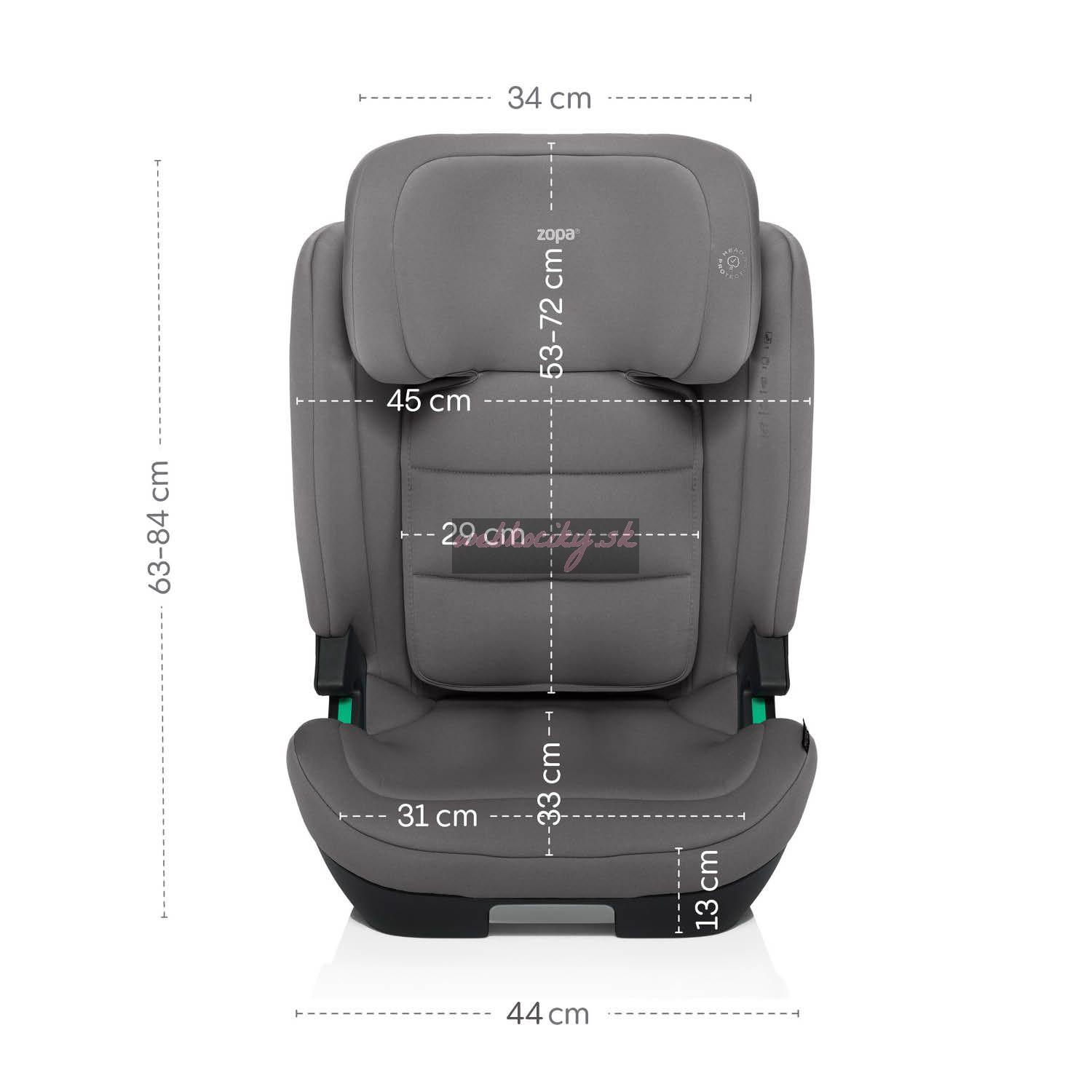 Priestranná autosedačka s mäkkými poťahmi a možnosťou sklopenia do 4 ergonomických polôh zaručuje pohodlné cestovanie aj na dlhších cestách a počas spánku. Polohu možno ľahko nastaviť pomocou aretačného mechanizmu v prednej časti autosedačky. Opierka hlavy ponúka až 10 polôh nastavenia, takže autosedačka rastie spolu s vaším dieťaťom.