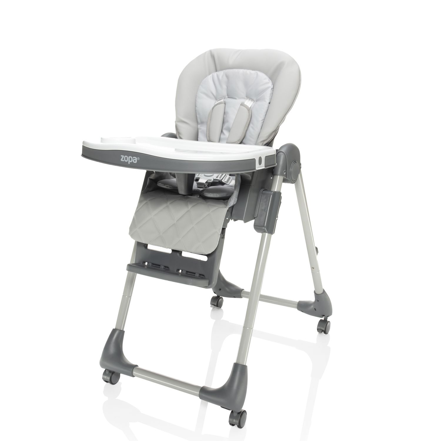 - Súčasťou balenia sú dva samostatné jedálenské podnosy, ktoré obsahujú držiak na pitie. Sú ľahko umývateľné. Polstrovanie stoličky sa dá jednoducho vybrať a vyčistiť.
