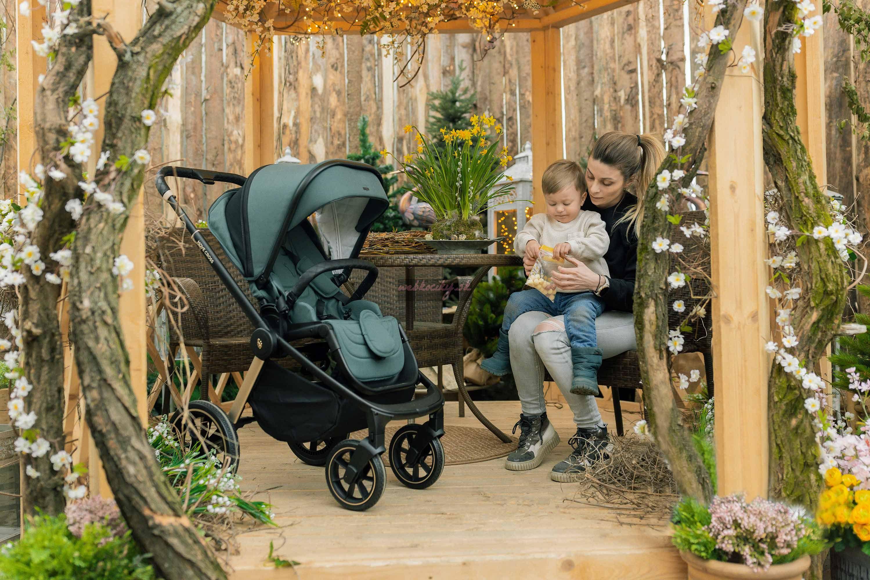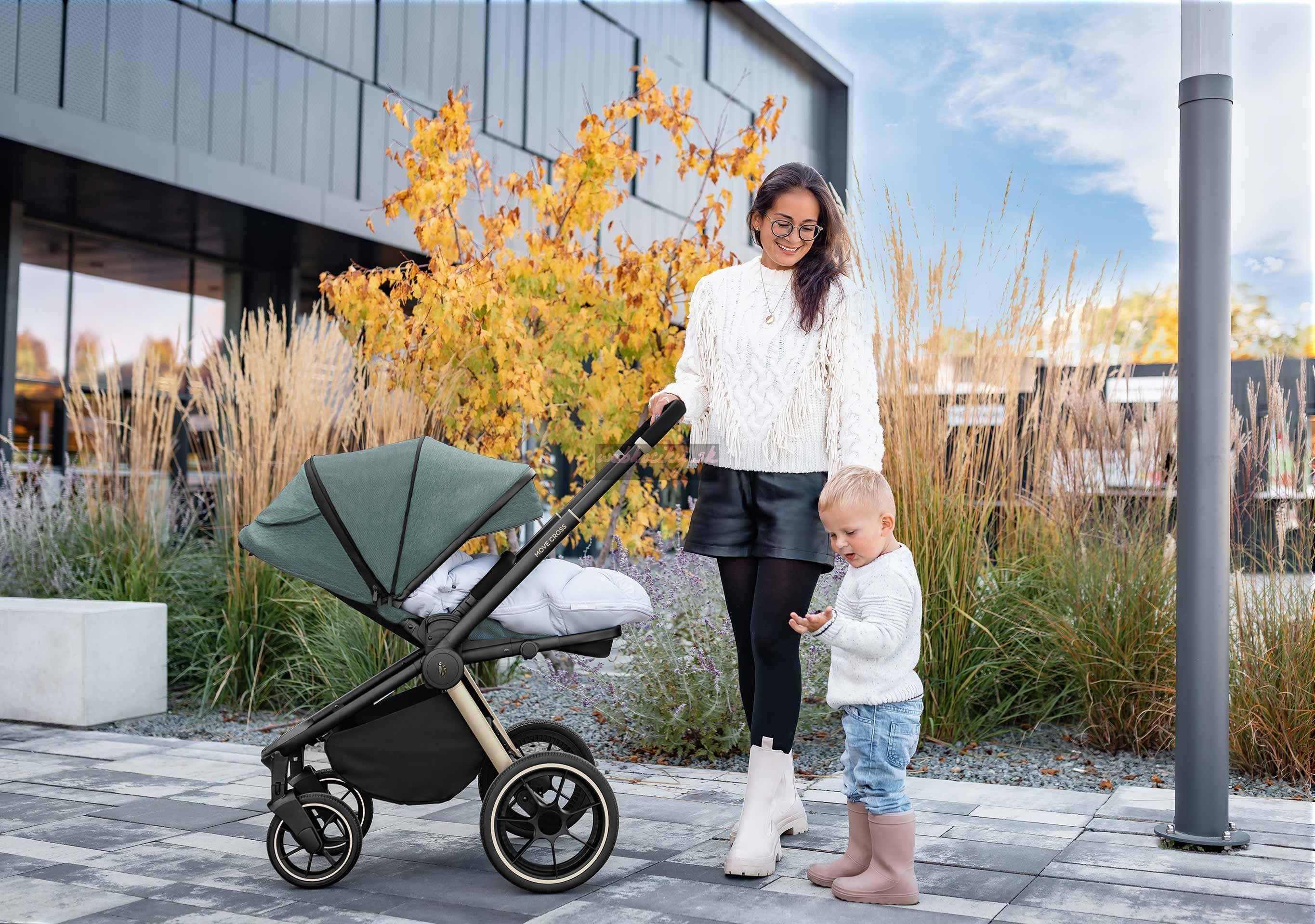 Extra veľké gumové kolesá s mäkkým odpružením hladko prevezú vaše dieťatko cez všetky prekážky. Kočík Move Cross je ideálnou voľbou pre aktívne rodiny. Uvezie deti až do 22 kg. O pohodlie na výletoch sa postará aj priestranné, mäkko polstrované sedenie s výškovo nastaviteľným päťbodovým bezpečnostným pásom. Chrbtová opierka je polohovateľná až do ľahu, polohovať je možné aj opierku na nožičky.
