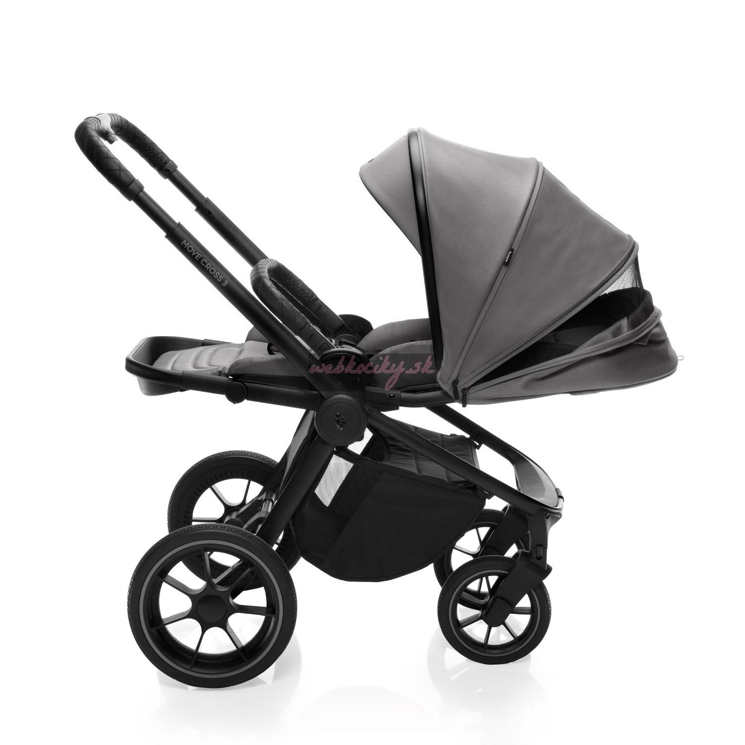 Pripravte sa na nekonečnú jazdu s ľahkosťou a štýlom kočíka Move Cross 3. S jeho extra veľkými gumovými kolesami a odpruženým podvozkom žiadny terén nebude prekážkou. Choďte kamkoľvek vás srdce ťahá, či už je to po mestských uličkách alebo cestách v divočine – s Move Cross 3 máte vždy istotu pohodlnej a bezpečnej jazdy