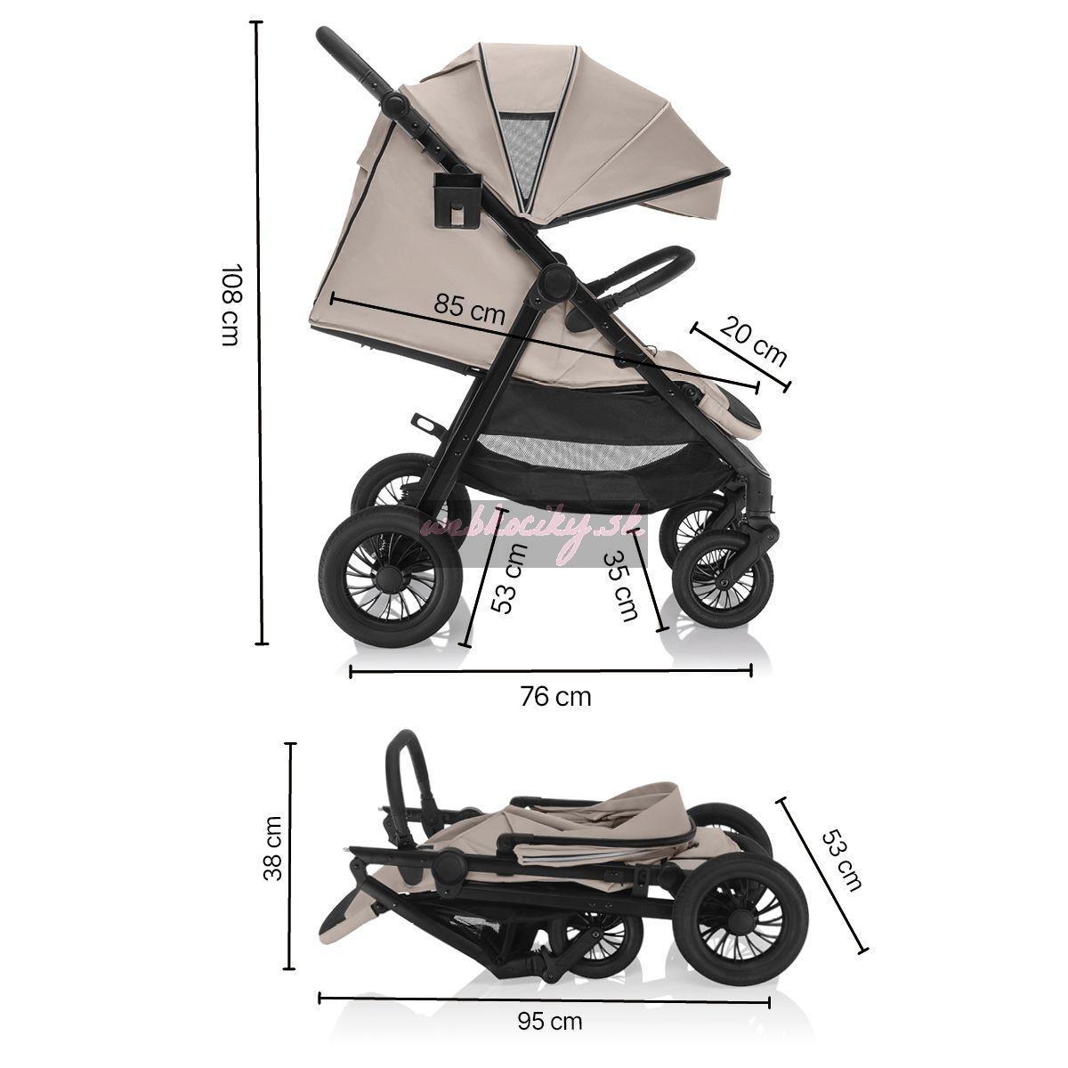 • Rozmery rozloženého kočíka: 108 × 76 × 85 cm