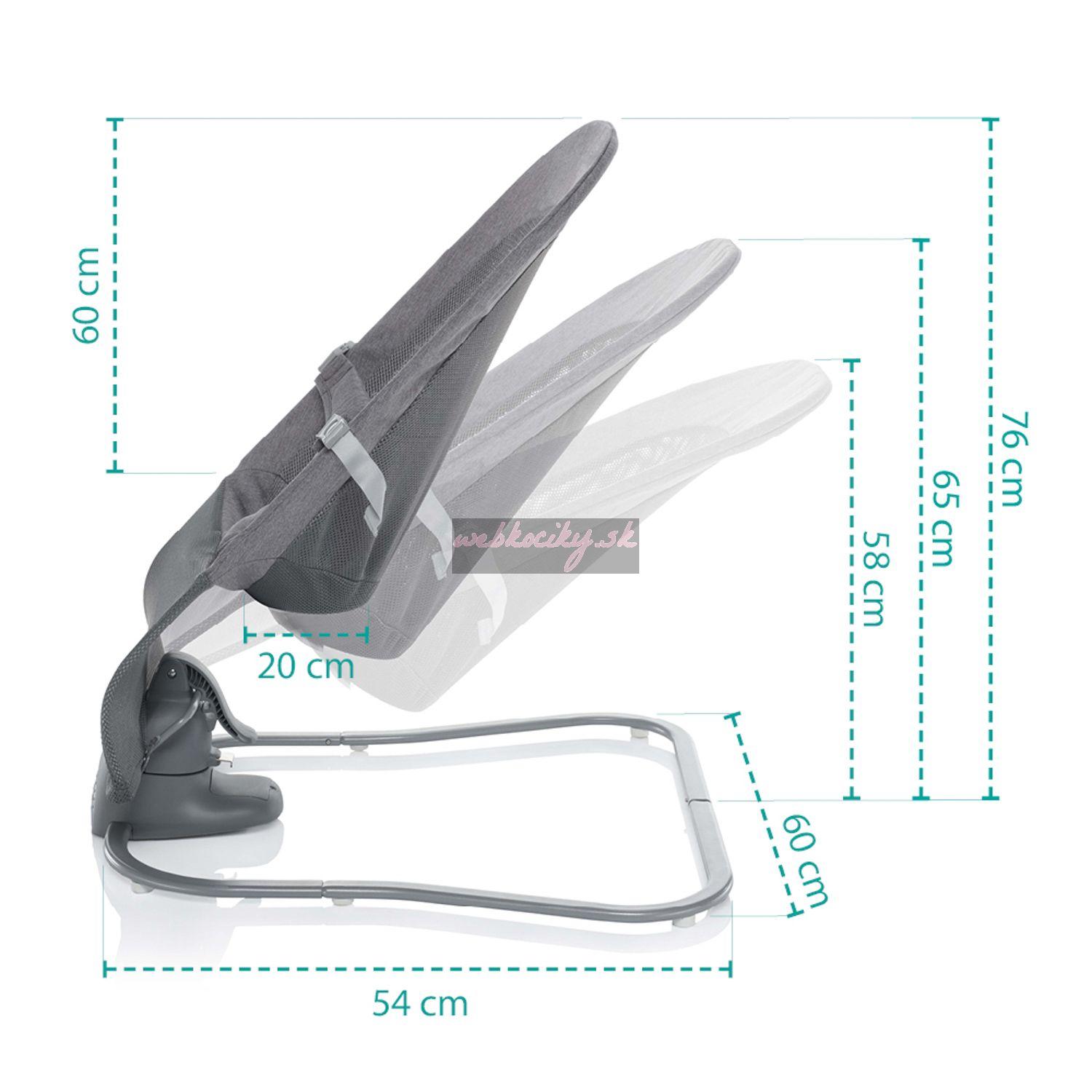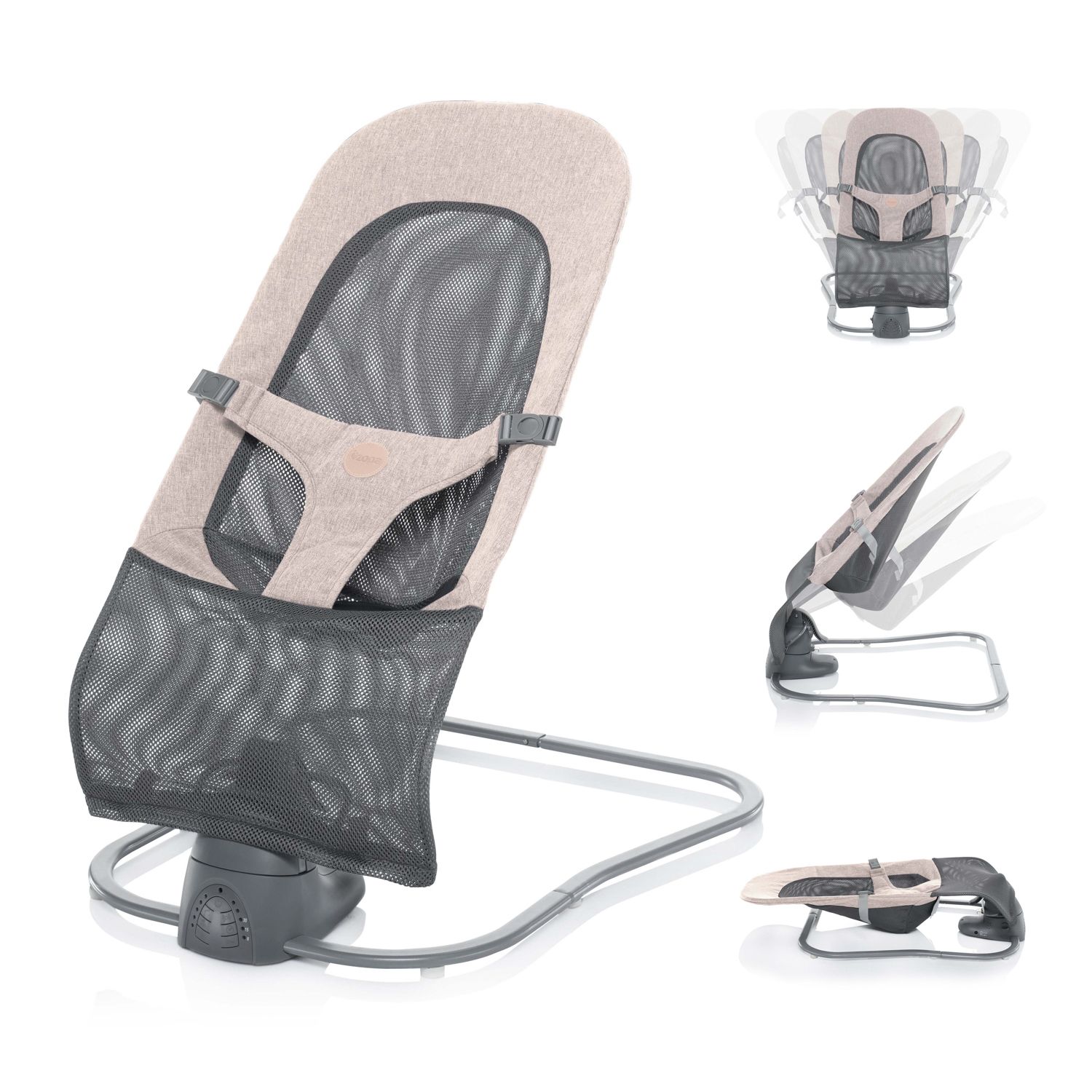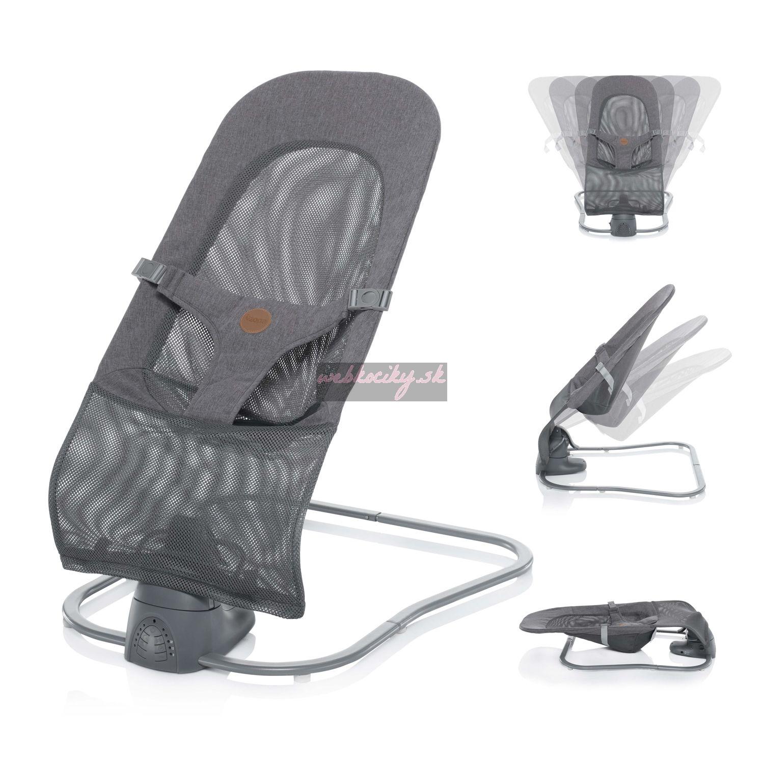 Lehátko je k dispozícii v dvoch farebných variantoch - sivo-béžovom a sivom. Hodí sa do každého interiéru bez toho, aby ho rušila výraznými farbami. Súčasťou sú robustné popruhy podšité mäkkou tkaninou, ktoré zabezpečujú bezpečnosť dieťaťa počas hojdania.