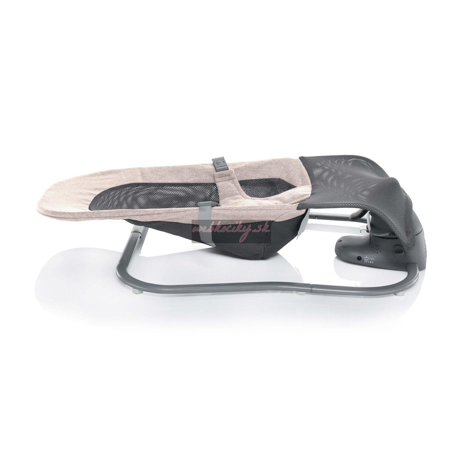 O napájanie sa stará adaptér, ktorý je súčasťou balenia. Lehátko je vybavené aj slotmi na batérie AAA, takže si ho môžete vziať so sebou na cesty aj tam, kde nie je prístup k elektrickej sieti. Súčasťou je aj časovač s intervalmi 8,15 a 30 minút. Užitočnou funkciou je automatické zapnutie, ktoré sa aktivuje okamžite, keď lehátko zaznamená pohyb dieťaťa. Všetky funkcie možno ovládať pomocou panela vpredu alebo môžete použiť diaľkové ovládanie, ktoré je súčasťou balenia.