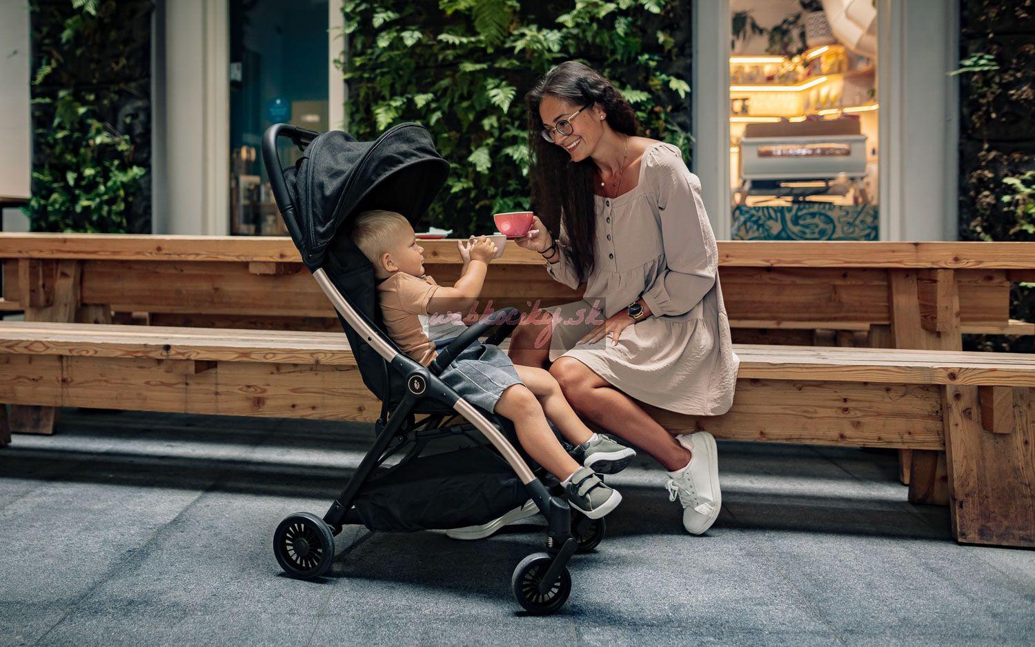 Robustný podvozok s nízkou hmotnosťou, malými rozmermi a skladaním jednou rukou. To sú hlavné dôvody, prečo si rodičia, ktorí radi cestujú, obľúbia Quiq. Môže nosiť deti od narodenia až do 22 kg. Odpružené kolesá zvládnu prechádzky v prírode aj po dlažbe v mestách. Vďaka kompaktným rozmerom zaberá minimum miesta a po zložení stojí samostatne.