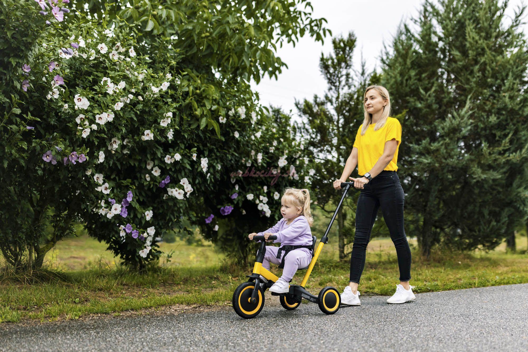 Deti si vybudujú vzťah ku všetkému, čo ich sprevádza od skorého detstva. Doprajte im dlhé roky s jedným kolesom, ktoré ich bude sprevádzať už od 1,5 roka ako trojkolka až do veku 5 rokov ako bicykel. Trojkolka má možnosť voľby používania s vodiacou tyčou alebo bez vodiacej tyče. Variant s vodiacou tyčou oceníte na dlhších výletoch, keď dieťaťu dôjdu sily samostatne šliapať.