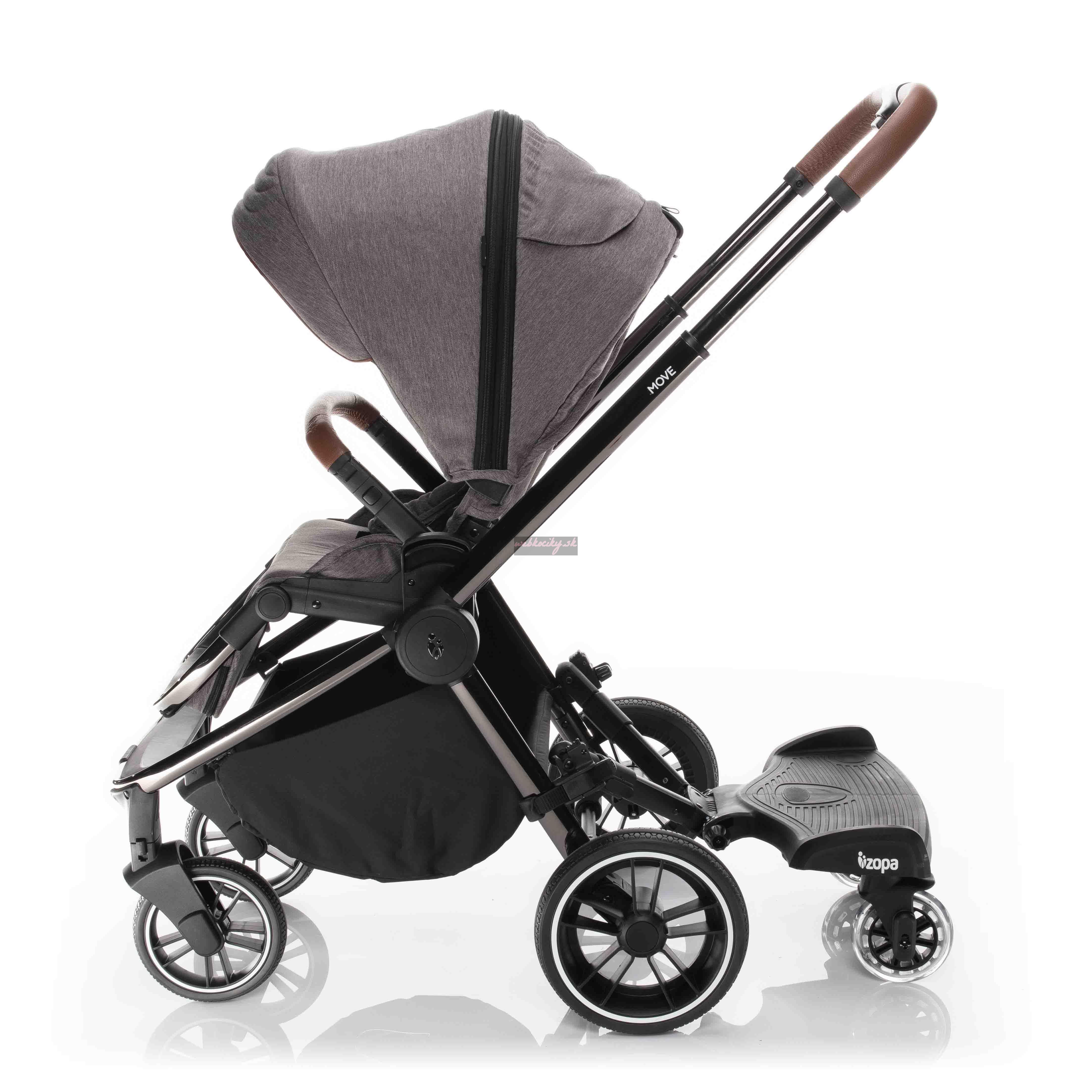 Vďaka rozsiahlym možnostiam nastavenia uhlov a dĺžky pripevňovacích ramien môžete Segboard prichytiť takmer na každý kočík. Pričom odpruženie koliesok stúpadla a ich priemer 12 cm, rovnako tak i gumové pneumatiky a guličkové ložiská, zaistí hladkú jazdu na každom povrchu.