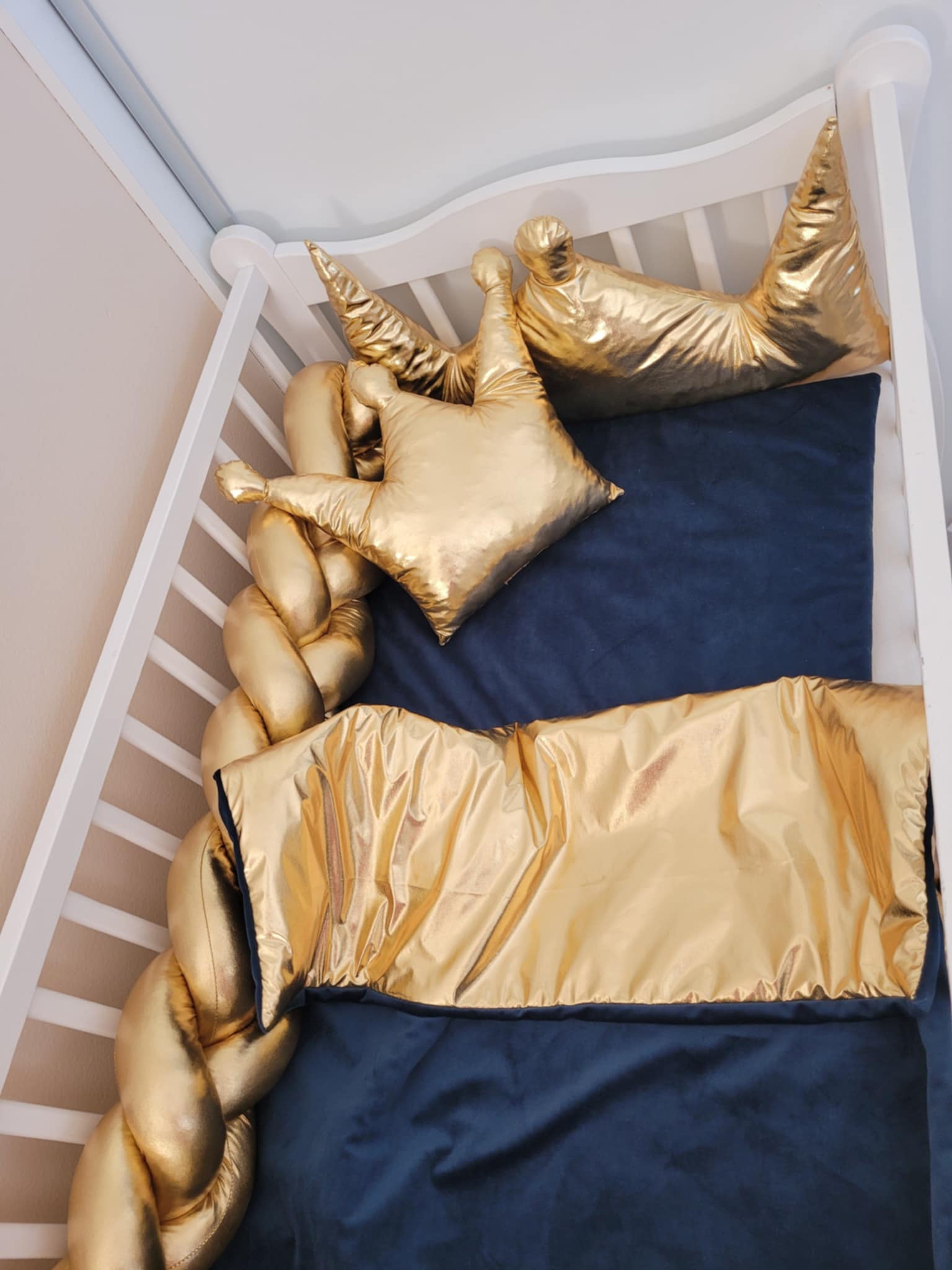 Handmade set do postieľky zlatý + modrý