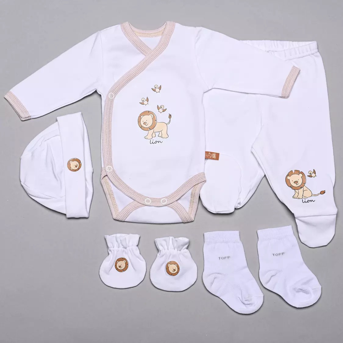 5-dielna kojenecká súprava z bavlny veľkosť 50-56 biela Lion