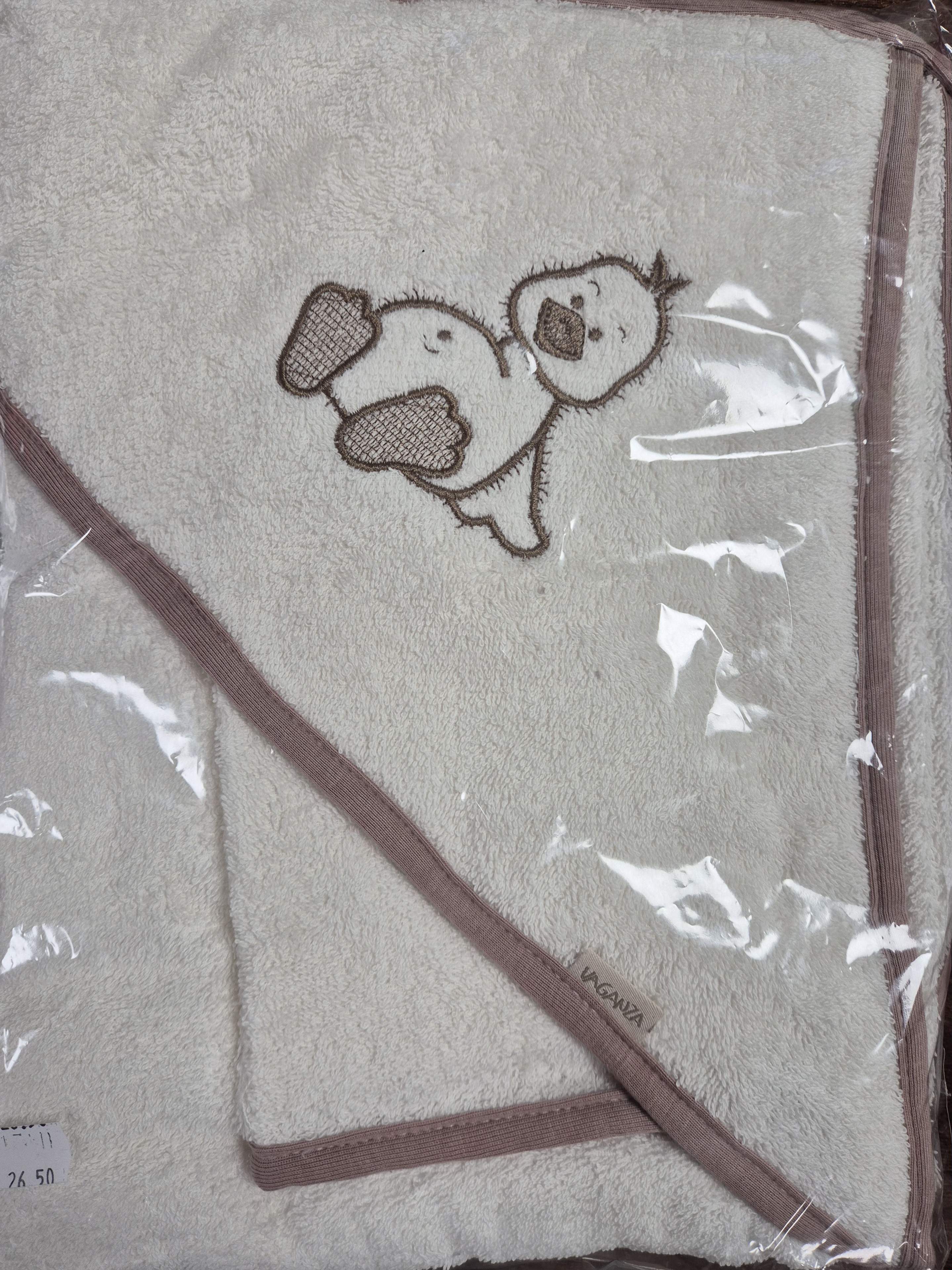 Detská osuška Vaganza 110 x 110 cm béžová s motívom medvedíka
